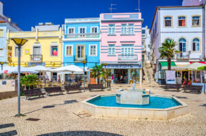 O centro histórico de Albufeira com uma atmosfera tradicional, com as suas casas caiadas de branco, com ruas estreitas cheias de cafés e lojas com uma animada vida noturna, sendo a avenida central uma sucessão de tentadores bares, restaurantes e discotecas.